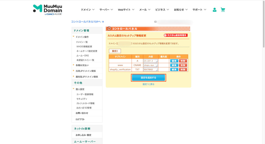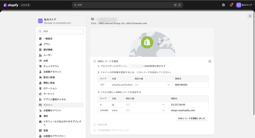 4. Shopifyドメイン