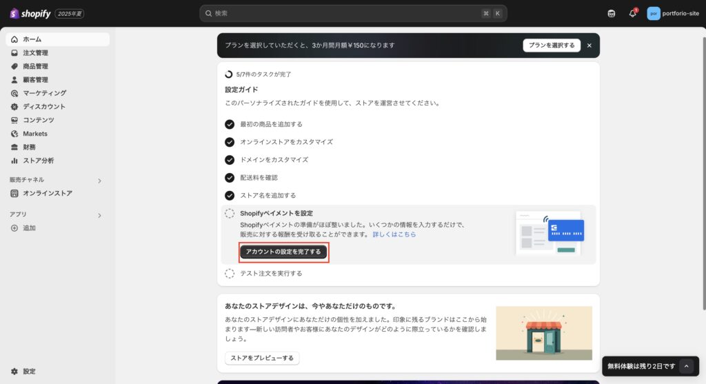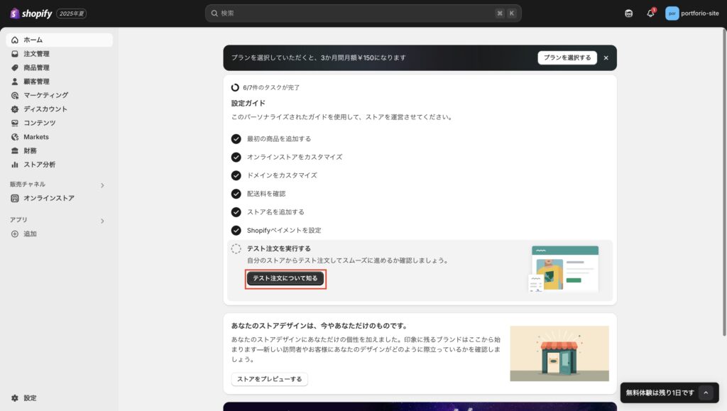 お疲れ様です。これで、Shopifyの初期設定は完了しましたが、テスト注文は重要な確認作業です。