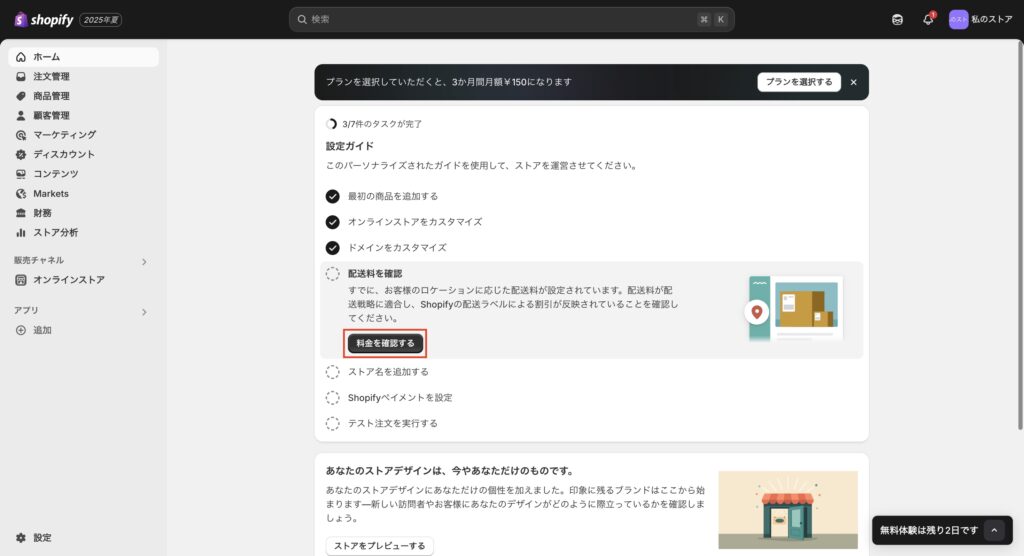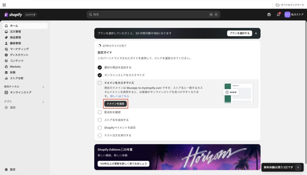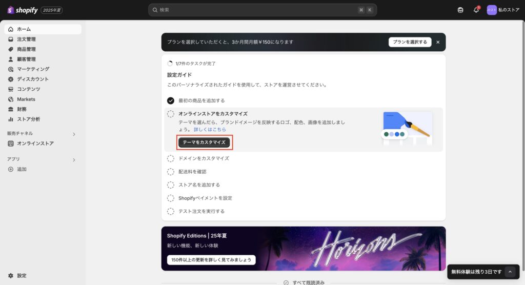 3. Shopifyストアのカスタマイズ設定