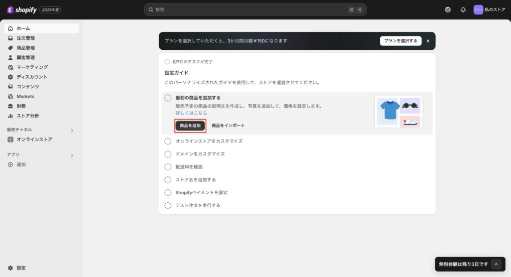 Shopifyの初期設定は多くの項目がありますが、一つずつ丁寧に設定することで、スムーズなECサイト運営が可能になります。3日間の無料トライアル期間を活用して、しっかりと設定を完了させましょう。