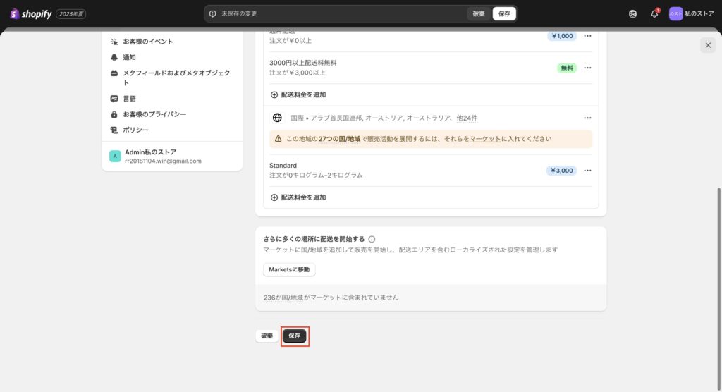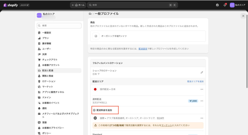 5. Shopify配送料設定