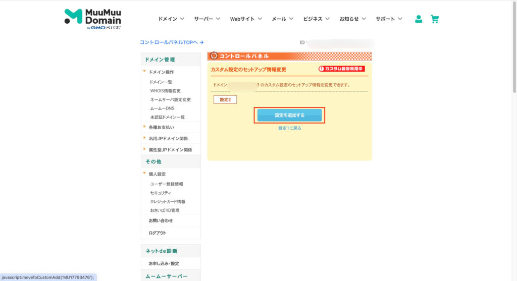 3. 「設定2へ進む」→「設定を追加する」をクリック