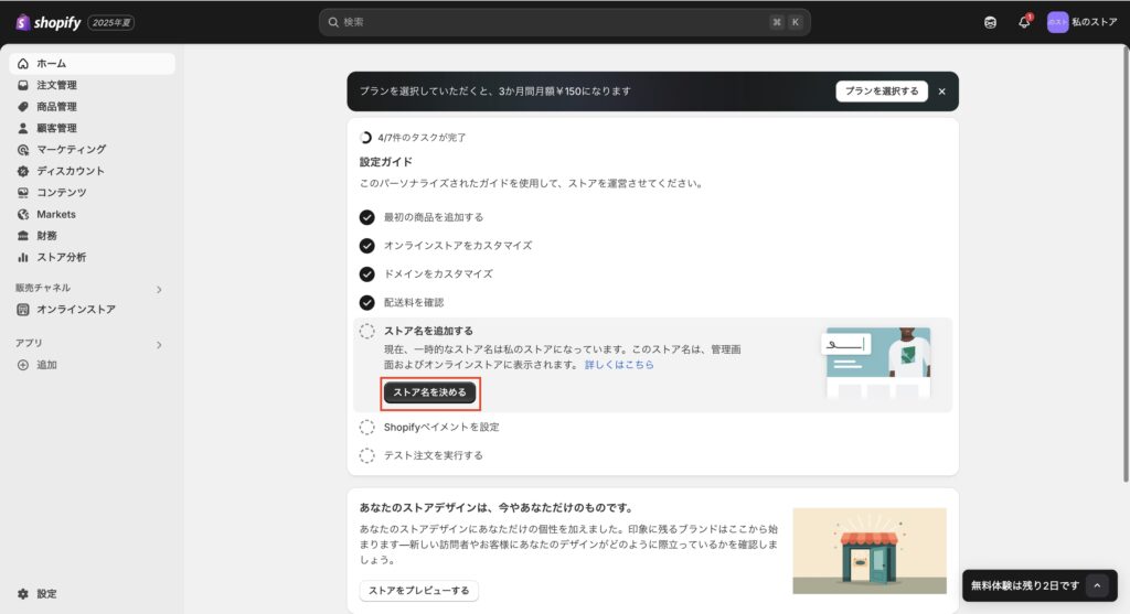 6. Shopifyストア名の決定